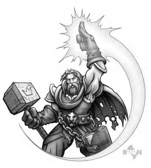 Uther schwingt einen Zweihandhammer mit einem Mahagonigriff und einem Diamantkopf. Ein