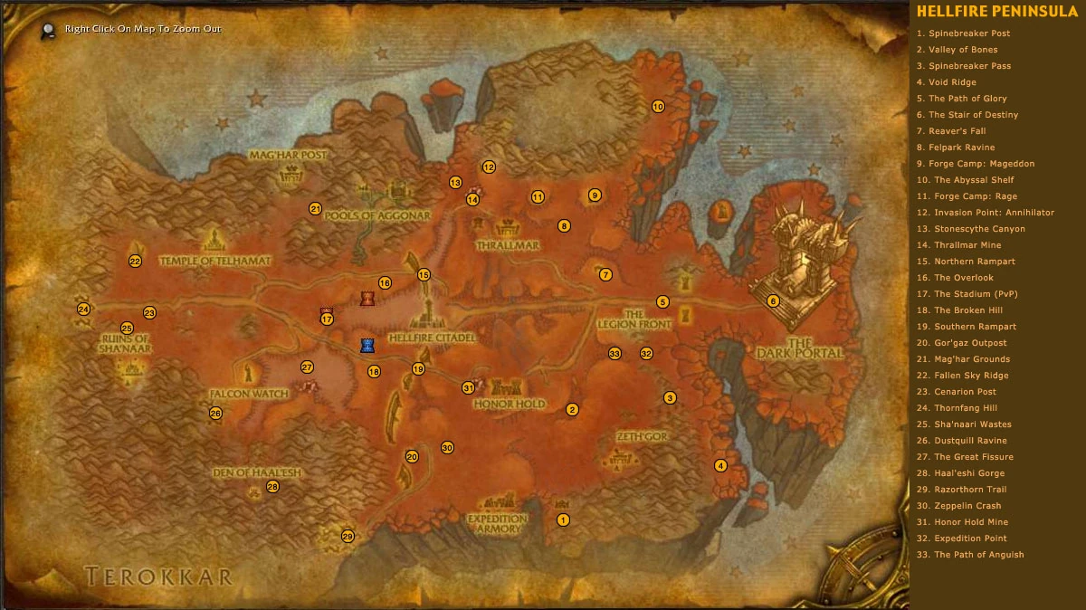 Outlandin ensimmäinen kehitysalue. Tuliperäisessä ja epätasaisessa maassa on yksi Horden linnake: Thrallmar ja yksi Alliancen linnake: Honor Hold.