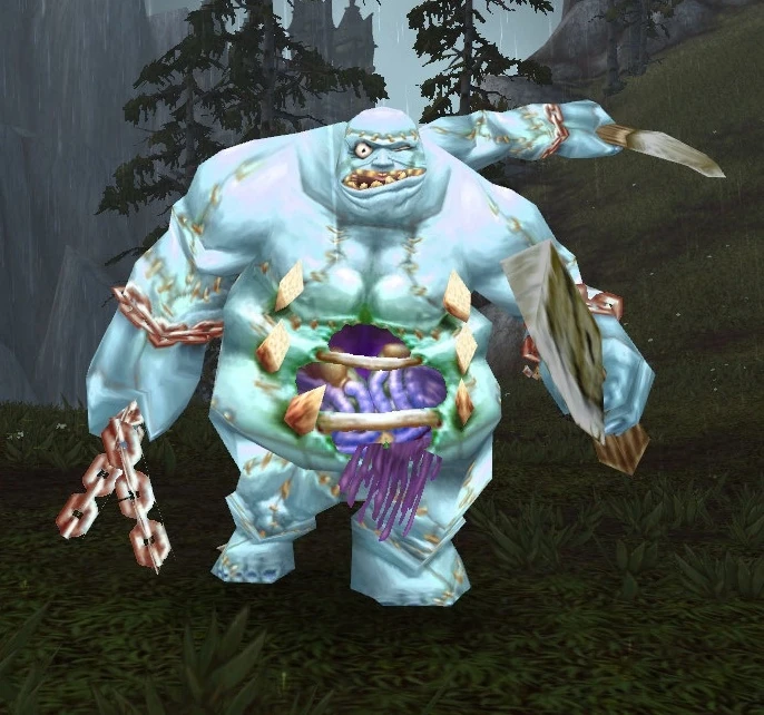 Les corps mutilés et corrompus des Abominations sont constitués des restes prélevés sur différents cadavres. Ces énormes guerriers, balafrés de blessures putrides et purulentes, adorent déchiqueter leurs ennemis. Lentes mais très pugnaces, les Abominations perdent constamment du sang et leur odeur rappelle la Goule qui vient de se rassasier. Elles sont armées de grands hachoirs et de crochets démesurés. Elles constituent un pilier important de l'armée du Fléau, au même titre que les Wyrms des glaces. Un nuage de bactéries et de maladies, dues à la Grande Peste, suit les Abominations à la trace. Cette traînée de gaz acide et toxique, appelée nuée putride, est réputée capable de faire pourrir les chairs en quelques instants. La chair fraîche les réjouit tout particulièrement.