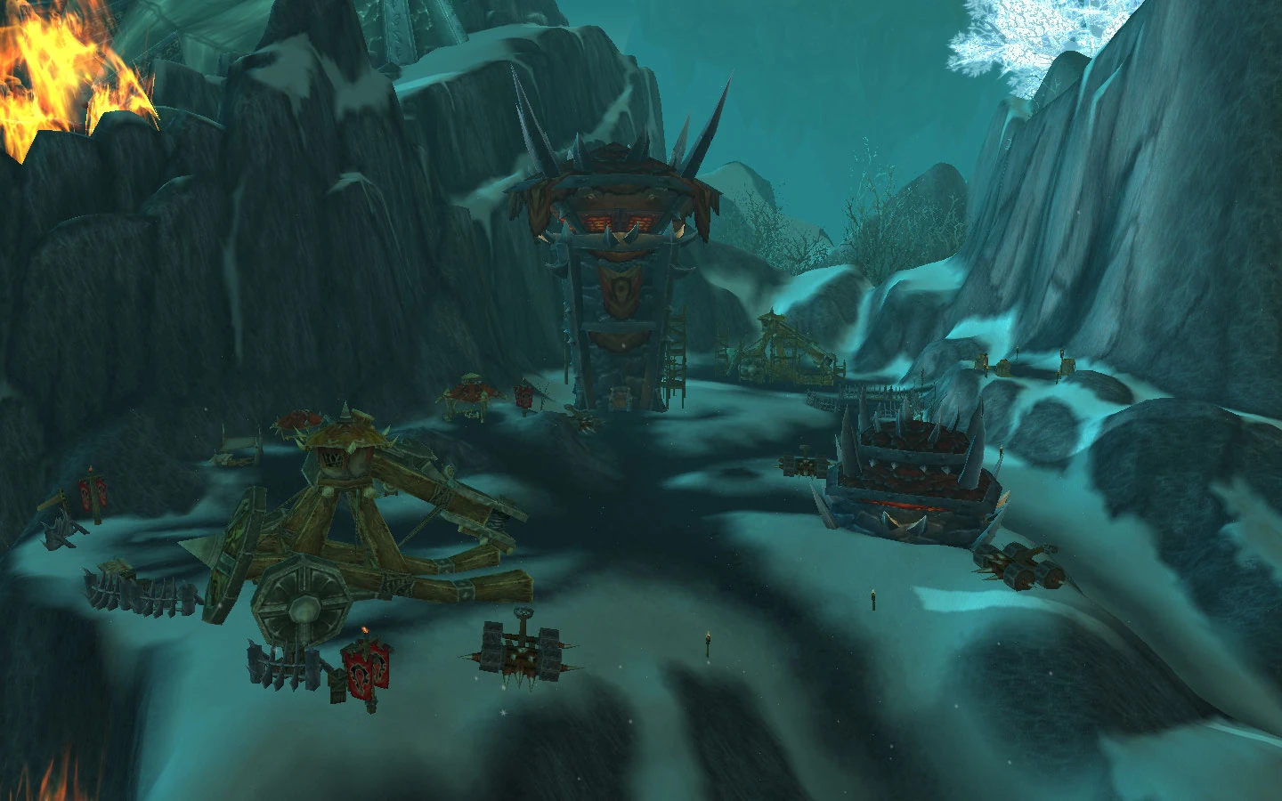 On y retrouve des troupes stationnées comme un détachement de la garde d'élite du chef de guerre : les Kor'kron, ainsi que des Trolls Sombrelance et des Taunka.