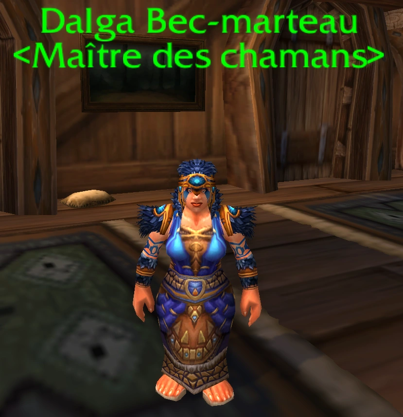Dalga Bec-marteau est une naine du clan des Marteaux-Hardis qui entraîne les chamans de l'Alliance.