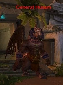 Le Général Husam fut nommé comme un des plus grands gardiens d'Uldum par les Titans même. Une fois que Siamat et les siens avaient passé un pacte avec Aile-de-mort pour guérir de la malédiction de la chair en échange de leur allégeance, Husam commanda une armée de rébéllion afin d'emprisonner l'élementaire de l'Air, mais il en restait néanmoins hostile envers les autres humanoïdes.