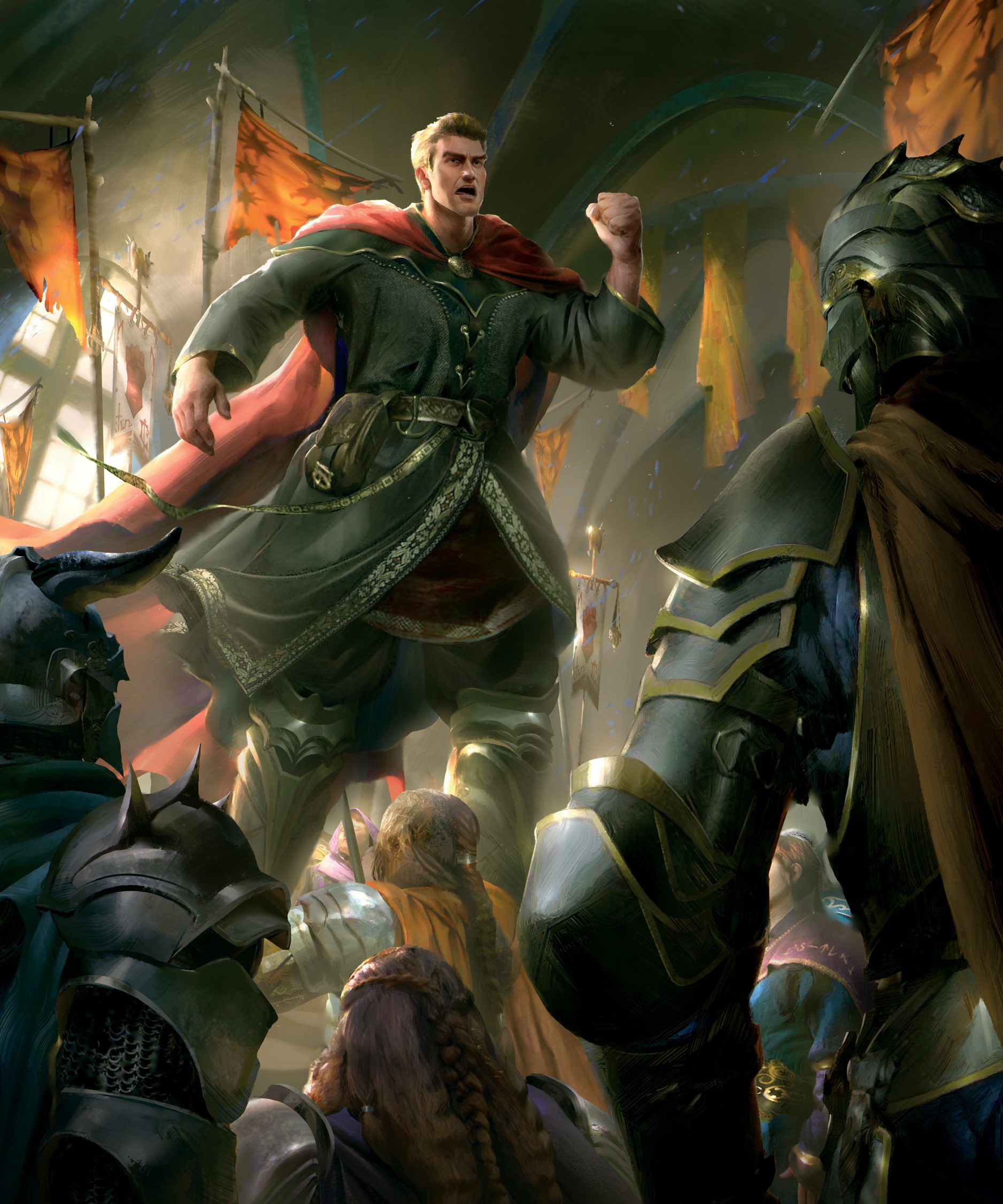 Illustration de Turalyon encourageant le Conseil des sept nations à former l'Alliance de Lordaeron