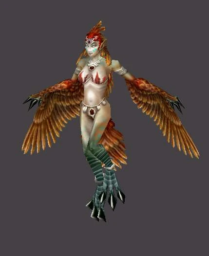 Elles possèdent aussi de longues oreilles et des traits de visages fins rappelant ceux des elfes de la nuit. Les harpies sont une race exclusivement féminine.