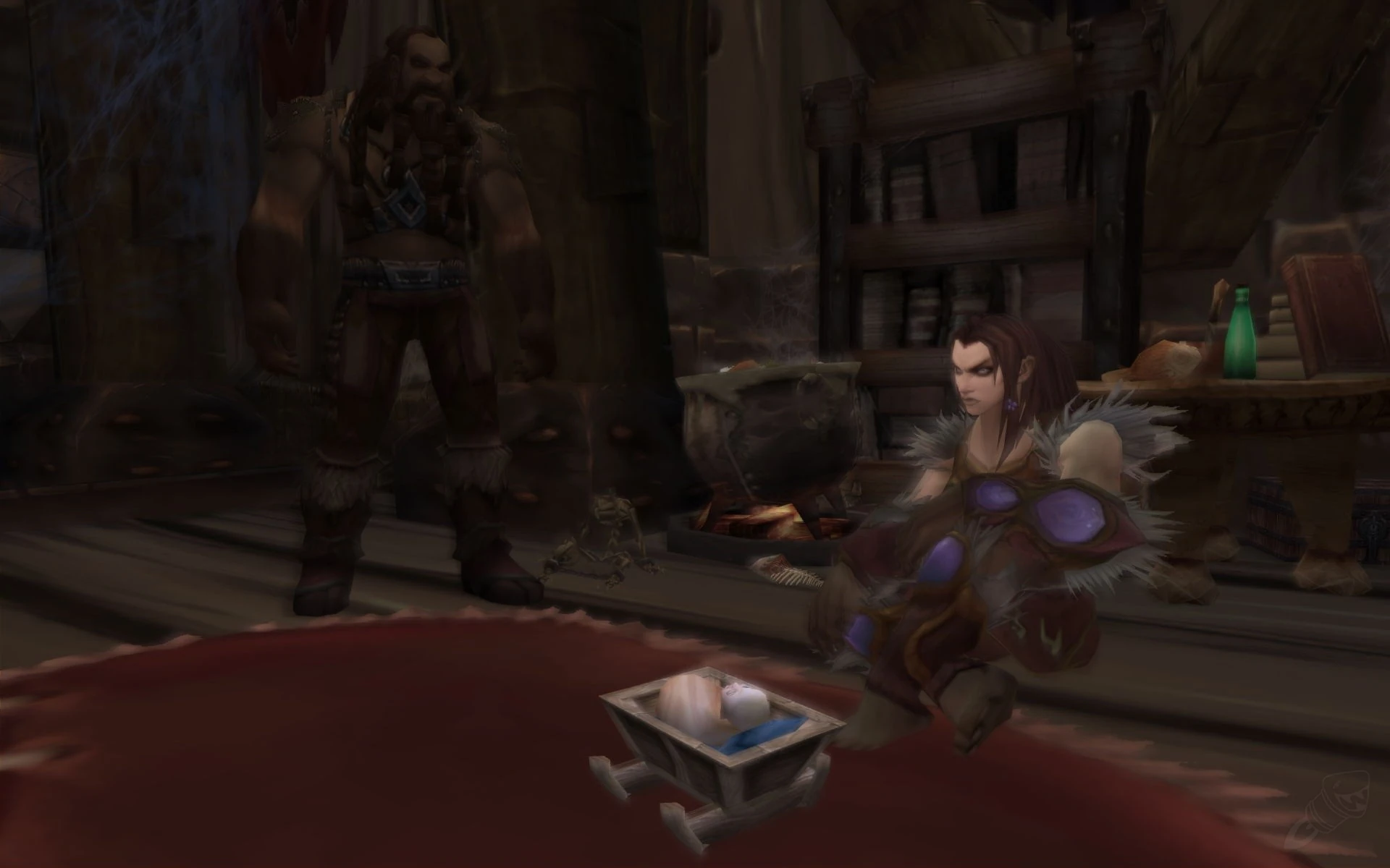 Un couple vrykul et leur enfant malformé durant l'exécution du premier décret du roi Ymiron tels qu'ils sont représentés dans le jeu World of Warcraft : Wrath of the Lich King
