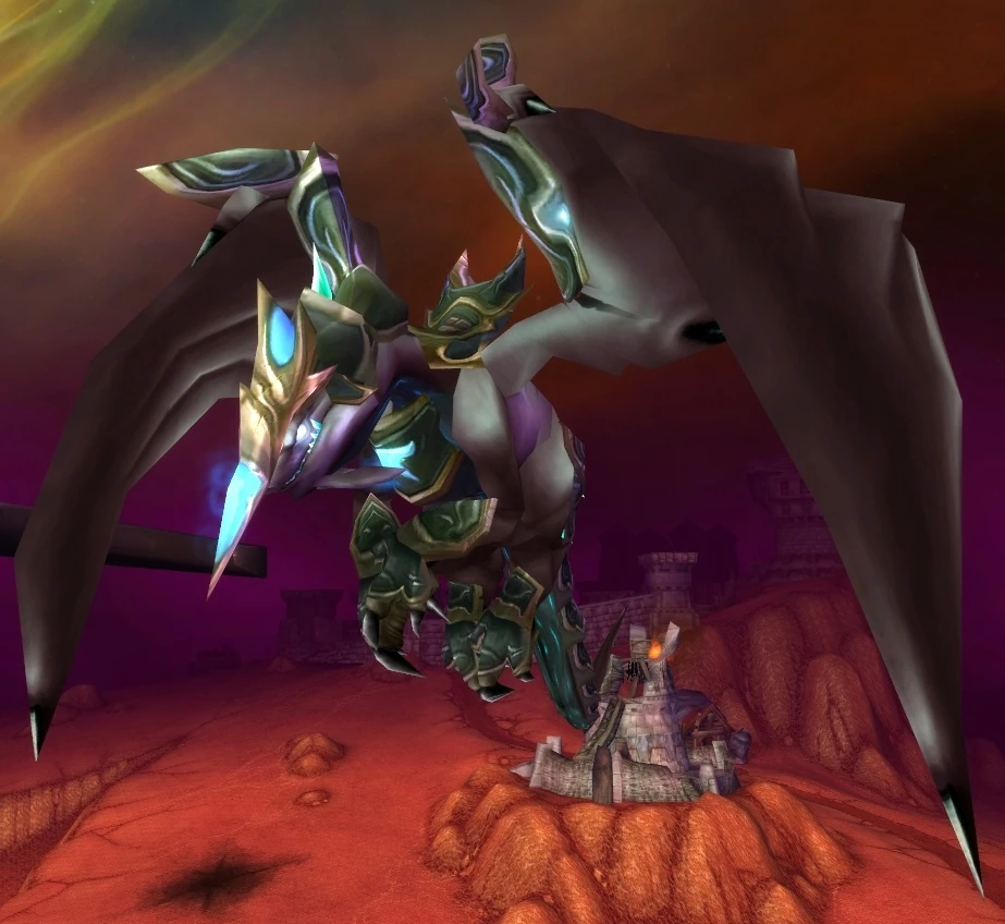 Nazan était un drake du néant qui sevrait de monture au gangr'orc Vazruden. Ensemble ils représentaient une force de frappe aérienne irrésistible, terreur hurlante tout en flammes et en griffes.