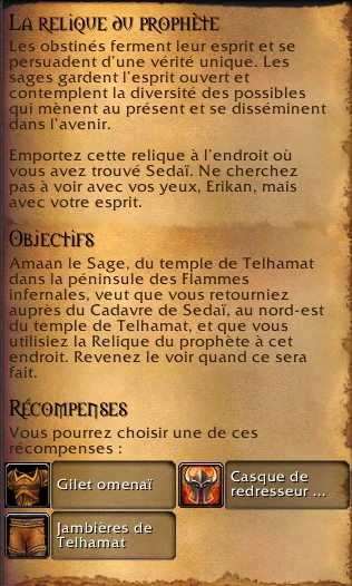 - - Lieu: Outreterre -> Péninsule des Flammes infernales -> Temple de Telhamat