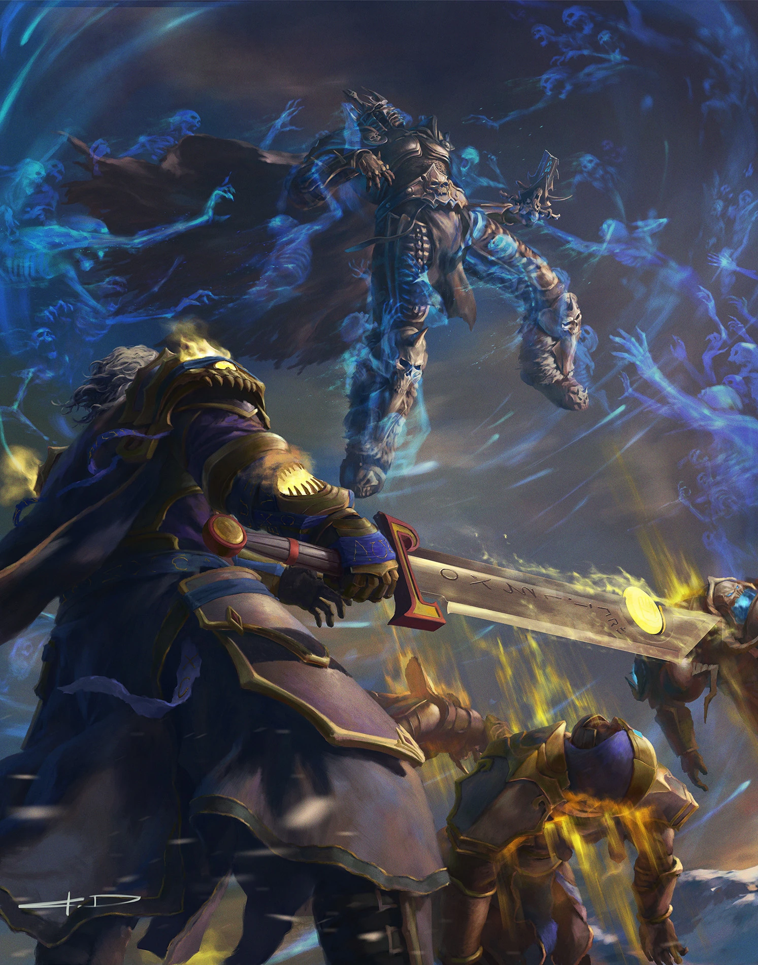 Cependant, avant qu'Arthas n'ai put en faire des serviteurs du Fléau, Tirion supplia la Lumière de lui venir en aide et fit preuve d'une grande volonté pour se libérer de son tombeau de glace. Enfin libre, Tirion chargea et frappa d'un coup puissant avec Porte-cendres, Deuillegivre, qui fut brisé. Finalement, Arthas périt sous les coups de Tirion, des champions d'Azeroth et des esprits enfin libre qui reclamait vengeance.