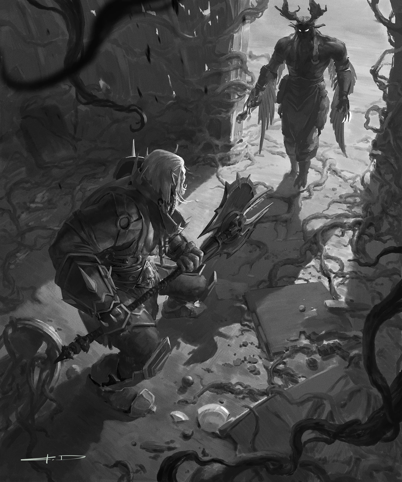 Alors que le Maître forgeron Helga qui désirait forger une nouvelle arme pour le seigneur de bataille manquait d'inspiration, il envoya le seigneur de bataille trouver Varok. Ce dernier accepta de se prêter au jeu, à condition que le seigneur de de bataille le vainc dans un duel d'honneur au Séjour céleste. Le résultat donna naissance au Brise-lame en arcanite.[21]