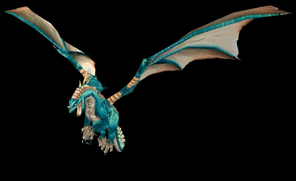 - Les Dragons bleus de Malygos, le seigneur de la magie, furent pratiquement exterminés par les Dragons noirs du maléfique Aile de Mort. Il ne subsiste plus qu'une poignée de grands Dragons bleus, mais leur puissance est incomparable. Originaires de Norfendre, les Dragons bleus s'éloignent rarement de la Désolation des Dragons, où ils communient avec les esprits des grands Dragons des temps passés. Leur souffle glacial et leurs griffes gigantesques ont signé l'arrêt de mort de nombreux voyageurs de Norfendre.[1]