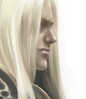 En efterligning av den unge Prins Arthas slik han ville sett ut med den vanlige menneskemodellen i World of Warcraft