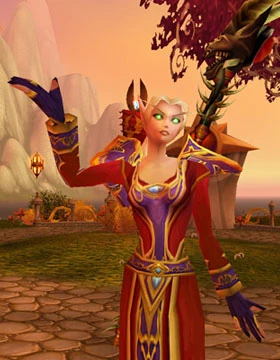 En Blood Elf magiker i magisterutustning