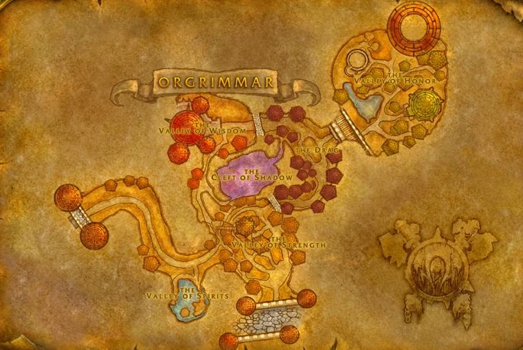 Byen er delt inn i naturlige daler (valleys) og formet rundt det kurvede terrenget i norlige Durotar. Valley of Strenght er ofte sett på som sentrum av byen, ettersom det er der banken, auksjonshuset, vertshuset og wind rider mesteren er.