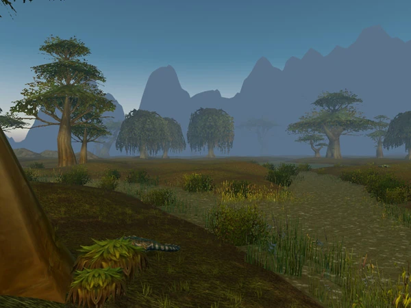 Bagno Zachodzącego Słońca jest najgłębszą częścią Mokradeł, gdzie dziwne persony znalazły swój dom. Fradd Swiftgear i Wenna Silkbread żyją tu w niewielkim kamiennym domu z wiatrakiem. Sprzedają oni dziwne przedmioty, które znajdują na bagnach, jak również rzadkie receptury. Otaczające posiadłość bagno jest pełne krokolisków, gnolli, jaszczurów, bagiennych bestii i śluzów, które zniechęcają niedoświadczonych podróżników do zagłębienia się w tej krainie.