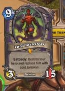 Warto też dodać że Jaraxxus występuje jako klasowa karta do czarnoksiężnika w Hearthstone, która po wystawieniu na stół zmienia twojego bohatera właśnie na Jaraxxusa a twoją mocą specjalną jest przysyłanie potężnych Infernali.