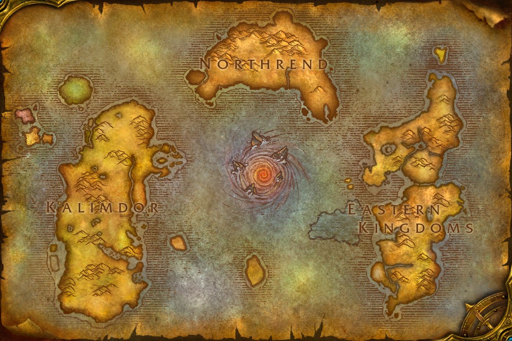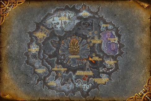 Карта новых зон в дополнении Cataclysm. Не масштабированная.